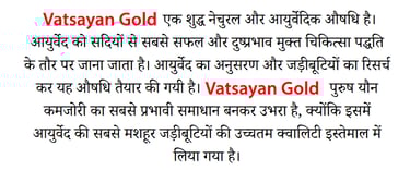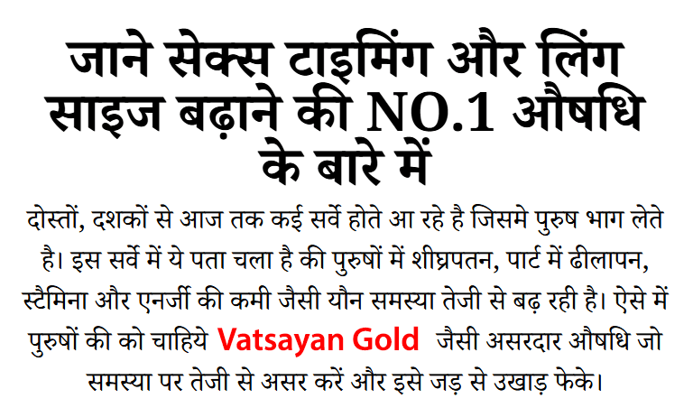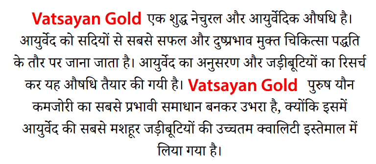 क्या आप भी कई कंपनियों की दवा खा खा कर थक चुके हैं और कोई लाभ नहीं मिला? तो अब आप घबराये नहीं! VATSAYAN GOLD 699/- देता 100% गारंटी रिजल्ट नही तो पैसा नही