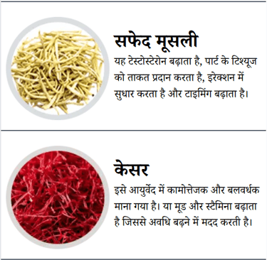 इसके कारण यह उत्पाद उत्तेजना और सेक्स की इच्छा को लगभग 5 गुना बढ़ा देता है, इसके कारण ऑर्गेज्म भी बढ़ जाता है और लंबे समय तक रहता है। उत्पाद लेने का एक महत्वपूर्ण परिणाम संभोग की अवधि में वृद्धि है। आज तक, यह एकमात्र पूरक है जो प्रीज्यूरमेन सेक्स से राहत दिलाता है। यानी इसके जैसा कोई दूसरा उत्पाद ही नहीं है।